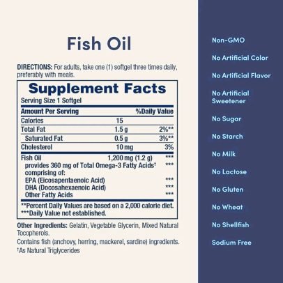Nature’s Bounty Fish Oil, Supports Heart Health, 1200 Mg, 360 Mg Omega-3, Rapid Release Softgels, 200 Ct